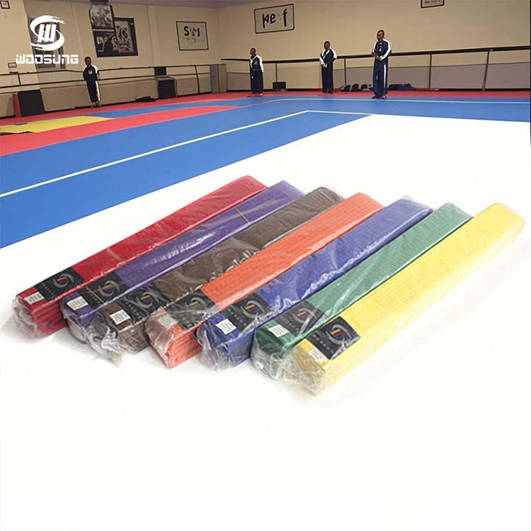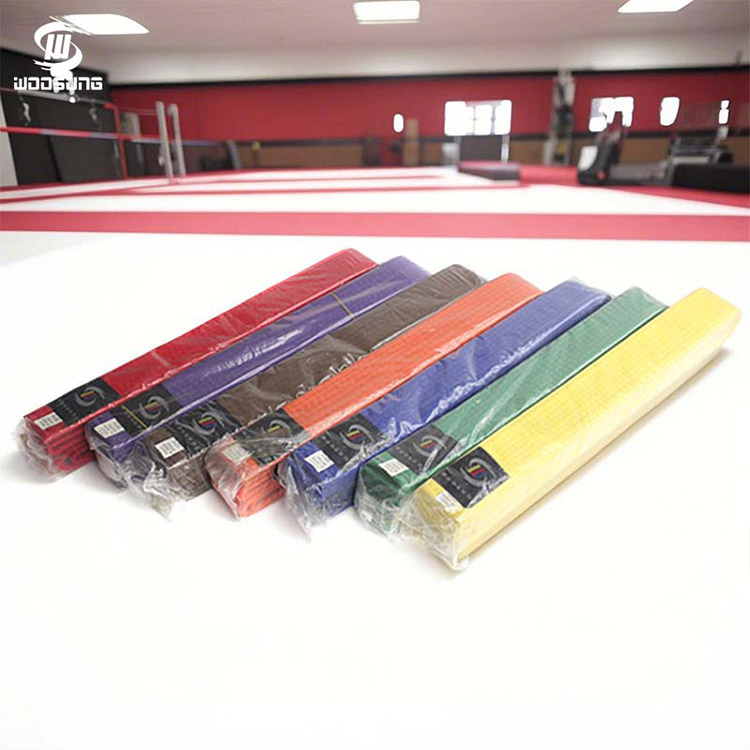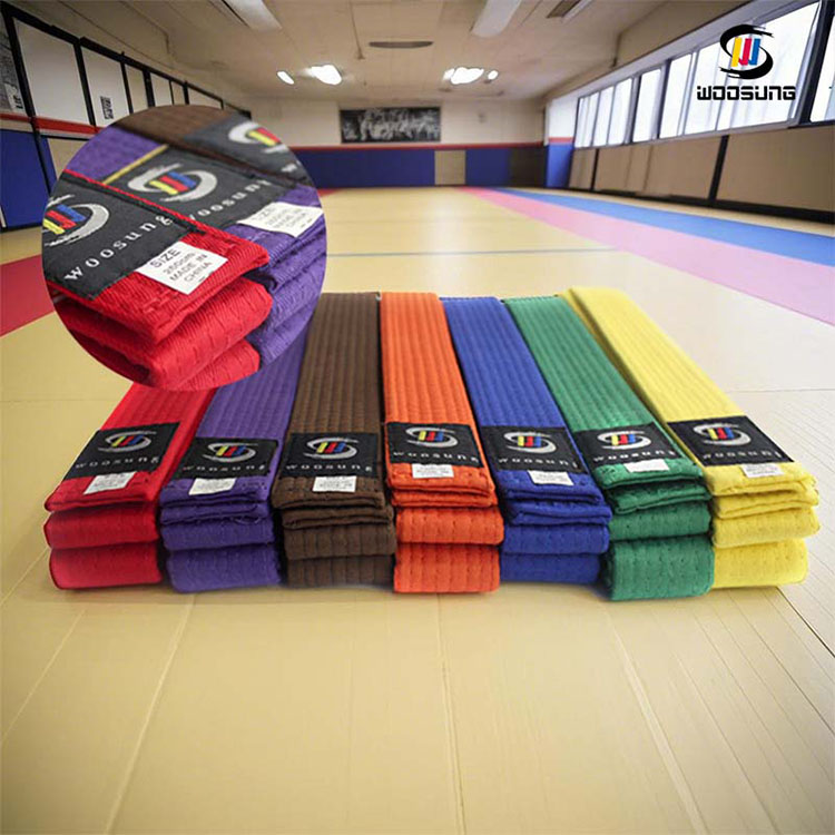 Пояса WOOSUNG Karate, как символ идентичности и знак прогресса для практикующих боевые искусства, являются нашим основным продуктом, основанным на более чем 20-летнем опыте производства оборудования для боевых искусств. Мы используем высококачественные материалы, такие как высококачественные смеси чистого хлопка и полиэстера, в сочетании с точным ткачеством и экологически чистыми процессами окрашивания, чтобы создать ремни профессионального уровня с превосходной долговечностью и износостойкостью, охватывающие все ранги от белого пояса до черного пояса.