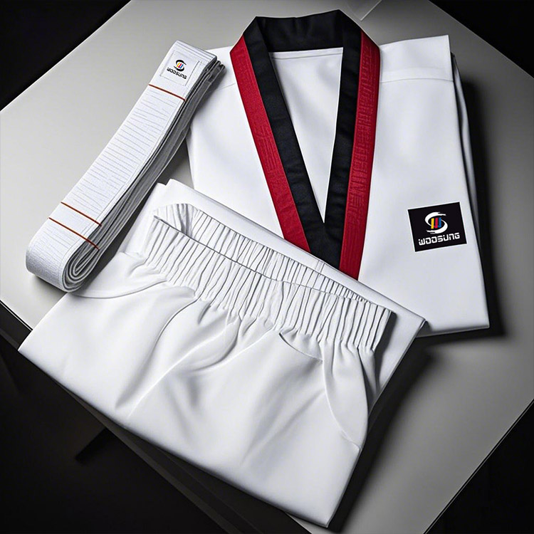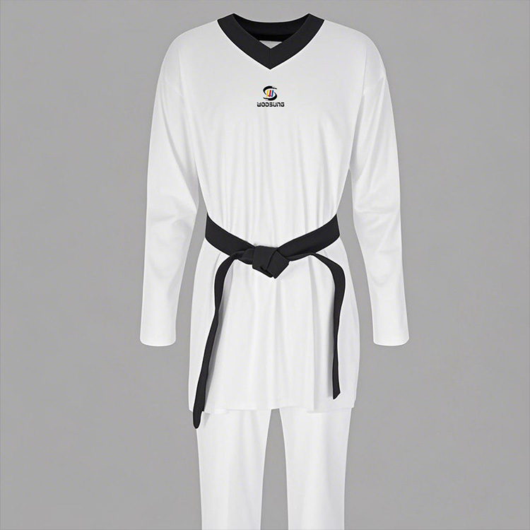 Униформа TKD для тхэквондо фабрики WOOSUNG изготовлена из высококачественной хлопчатобумажной ткани, которая дышащая, удобная, прочная и не деформируется. OEM-услуги по настройке, такие как печать логотипов, также доступны для удовлетворения как практичности, так и потребностей в персонализации.
